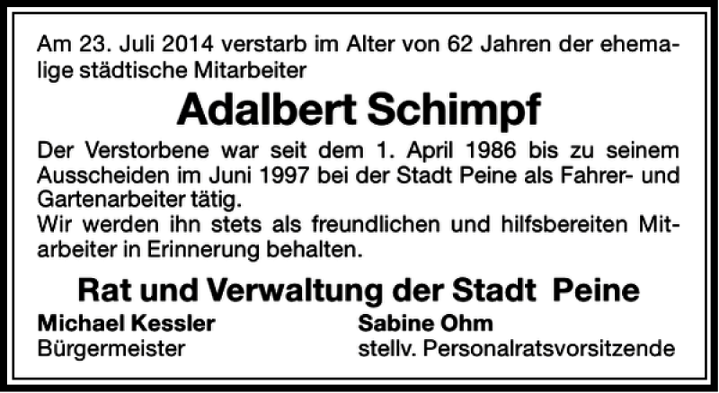 Hier finden Sie alle Traueranzeigen aus der Zeitung, die bisher für Adalbert Schimpf erschienen sind. Weitere Traueranzeigen, die in der Zeitung erscheinen, werden hier ebenfalls aufgelistet