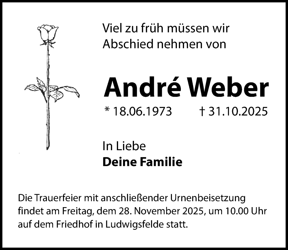Hier finden Sie alle Traueranzeigen aus der Zeitung, die bisher für André Weber erschienen sind. Weitere Traueranzeigen, die in der Zeitung erscheinen, werden hier ebenfalls aufgelistet