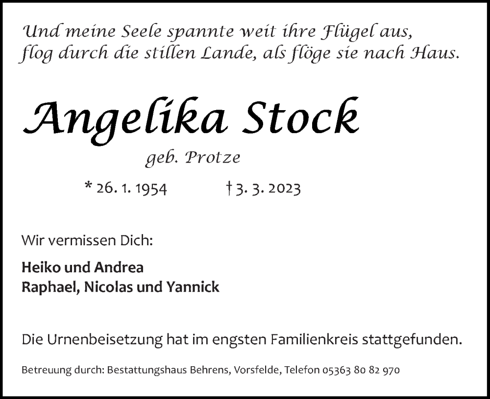 Hier finden Sie alle Traueranzeigen aus der Zeitung, die bisher für Angelika Stock erschienen sind. Weitere Traueranzeigen, die in der Zeitung erscheinen, werden hier ebenfalls aufgelistet