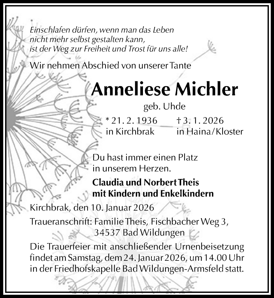 Hier finden Sie alle Traueranzeigen aus der Zeitung, die bisher für Anneliese Michler erschienen sind. Weitere Traueranzeigen, die in der Zeitung erscheinen, werden hier ebenfalls aufgelistet