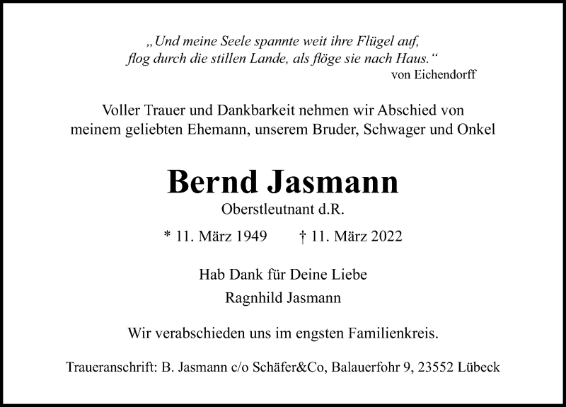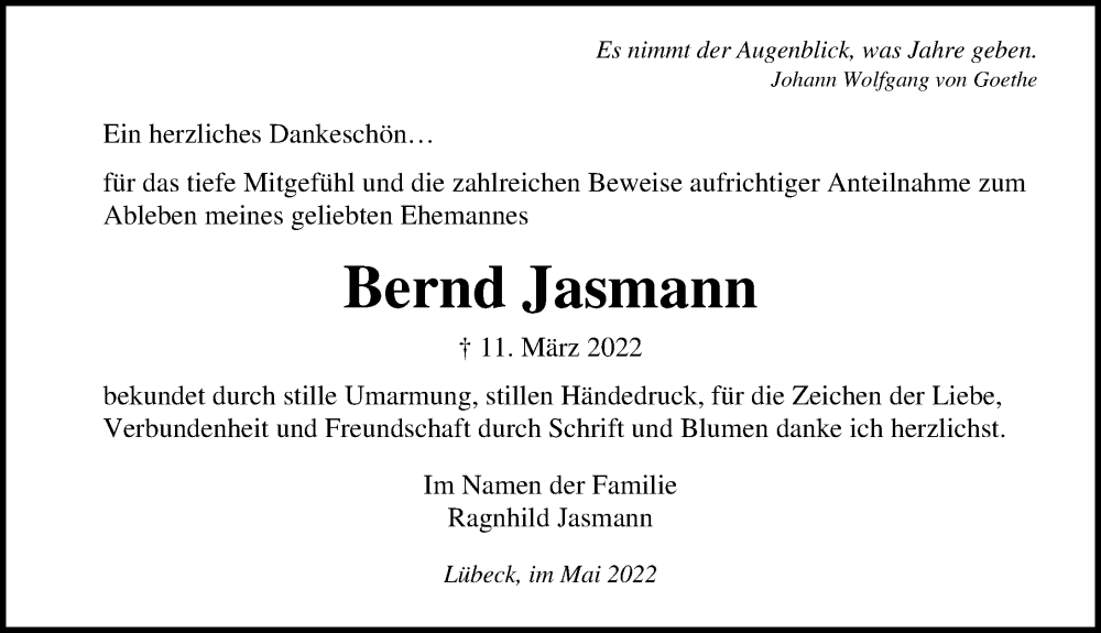 Hier finden Sie alle Traueranzeigen aus der Zeitung, die bisher für Bernd Jasmann erschienen sind. Weitere Traueranzeigen, die in der Zeitung erscheinen, werden hier ebenfalls aufgelistet