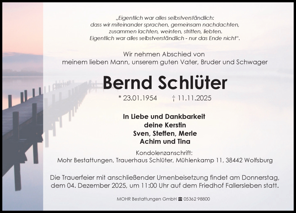 Hier finden Sie alle Traueranzeigen aus der Zeitung, die bisher für Bernd Schlüter erschienen sind. Weitere Traueranzeigen, die in der Zeitung erscheinen, werden hier ebenfalls aufgelistet