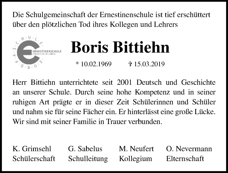 Hier finden Sie alle Traueranzeigen aus der Zeitung, die bisher für Boris Bittiehn erschienen sind. Weitere Traueranzeigen, die in der Zeitung erscheinen, werden hier ebenfalls aufgelistet
