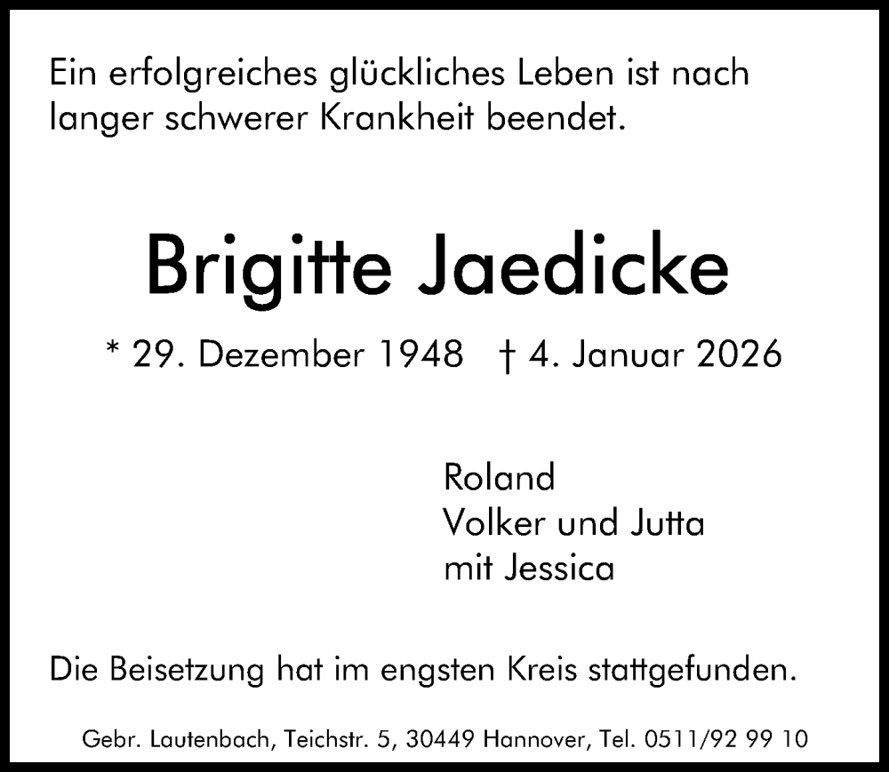 Hier finden Sie alle Traueranzeigen aus der Zeitung, die bisher für Brigitte Jaedicke erschienen sind. Weitere Traueranzeigen, die in der Zeitung erscheinen, werden hier ebenfalls aufgelistet