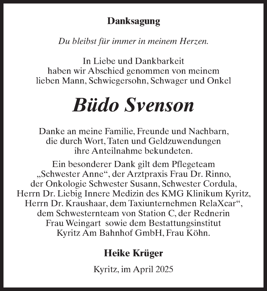 Hier finden Sie alle Traueranzeigen aus der Zeitung, die bisher für Büdo Svenson erschienen sind. Weitere Traueranzeigen, die in der Zeitung erscheinen, werden hier ebenfalls aufgelistet
