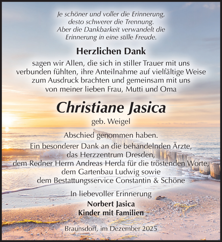 Hier finden Sie alle Traueranzeigen aus der Zeitung, die bisher für Christiane Jasica erschienen sind. Weitere Traueranzeigen, die in der Zeitung erscheinen, werden hier ebenfalls aufgelistet