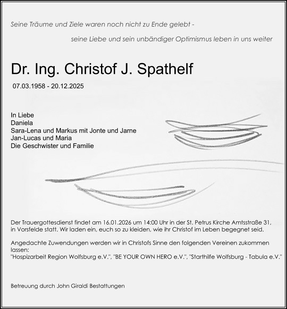 Hier finden Sie alle Traueranzeigen aus der Zeitung, die bisher für Christof J. Spathelf erschienen sind. Weitere Traueranzeigen, die in der Zeitung erscheinen, werden hier ebenfalls aufgelistet