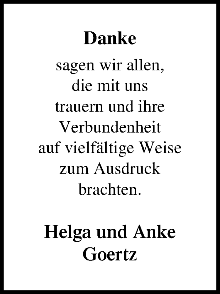 Hier finden Sie alle Traueranzeigen aus der Zeitung, die bisher für Danke erschienen sind. Weitere Traueranzeigen, die in der Zeitung erscheinen, werden hier ebenfalls aufgelistet