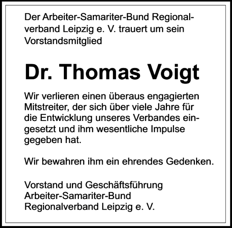 Hier finden Sie alle Traueranzeigen aus der Zeitung, die bisher für Dr. Thomas Voigt erschienen sind. Weitere Traueranzeigen, die in der Zeitung erscheinen, werden hier ebenfalls aufgelistet