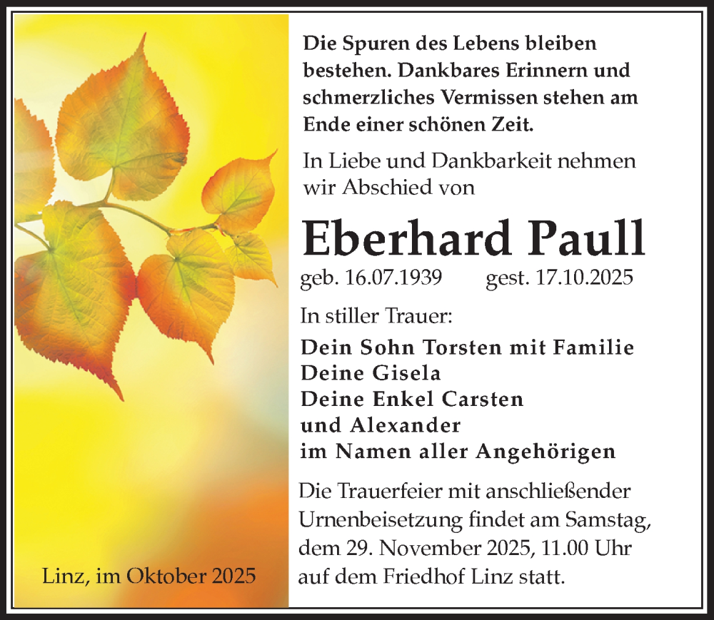 Hier finden Sie alle Traueranzeigen aus der Zeitung, die bisher für Eberhard Paull erschienen sind. Weitere Traueranzeigen, die in der Zeitung erscheinen, werden hier ebenfalls aufgelistet