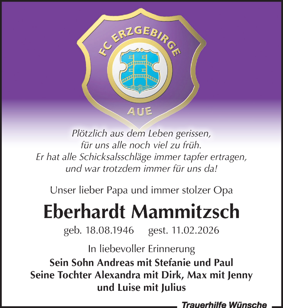 Hier finden Sie alle Traueranzeigen aus der Zeitung, die bisher für Eberhardt Mammitzsch erschienen sind. Weitere Traueranzeigen, die in der Zeitung erscheinen, werden hier ebenfalls aufgelistet