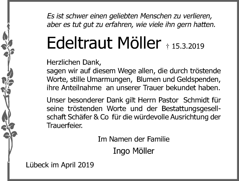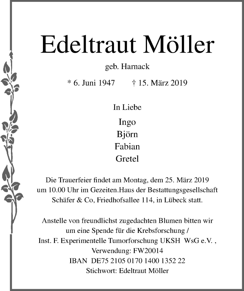 Hier finden Sie alle Traueranzeigen aus der Zeitung, die bisher für Edeltraut Möller erschienen sind. Weitere Traueranzeigen, die in der Zeitung erscheinen, werden hier ebenfalls aufgelistet