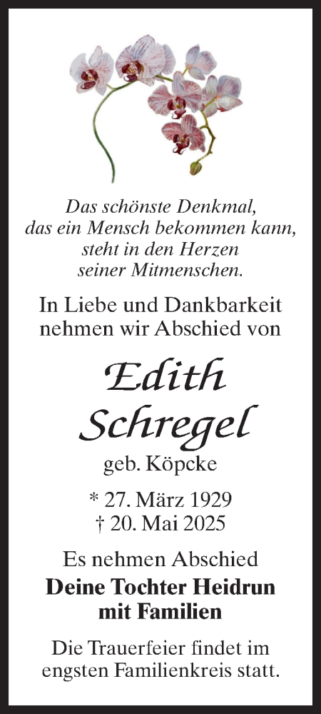 Hier finden Sie alle Traueranzeigen aus der Zeitung, die bisher für Edith Schregel erschienen sind. Weitere Traueranzeigen, die in der Zeitung erscheinen, werden hier ebenfalls aufgelistet