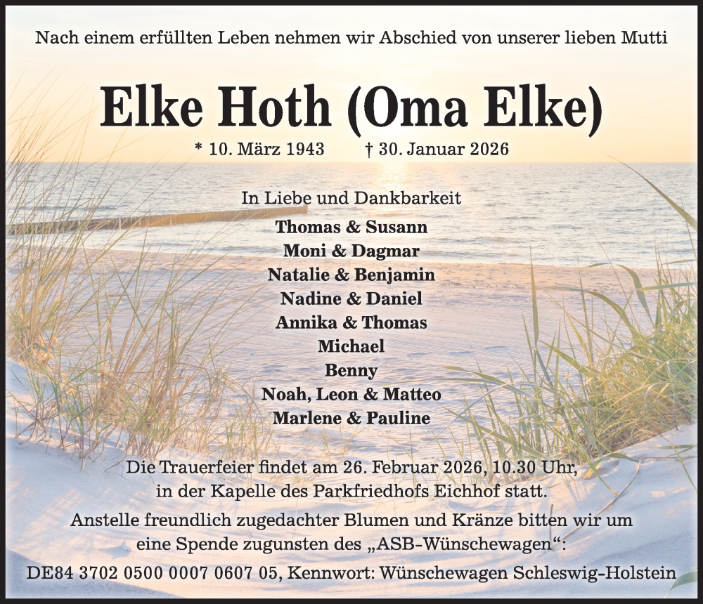 Hier finden Sie alle Traueranzeigen aus der Zeitung, die bisher für Elke Hoth erschienen sind. Weitere Traueranzeigen, die in der Zeitung erscheinen, werden hier ebenfalls aufgelistet