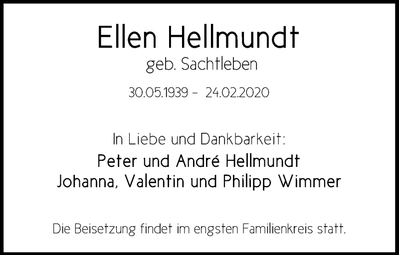 Hier finden Sie alle Traueranzeigen aus der Zeitung, die bisher für Ellen Hellmundt erschienen sind. Weitere Traueranzeigen, die in der Zeitung erscheinen, werden hier ebenfalls aufgelistet