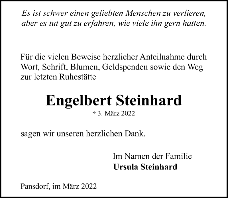 Hier finden Sie alle Traueranzeigen aus der Zeitung, die bisher für Engelbert Steinhard erschienen sind. Weitere Traueranzeigen, die in der Zeitung erscheinen, werden hier ebenfalls aufgelistet