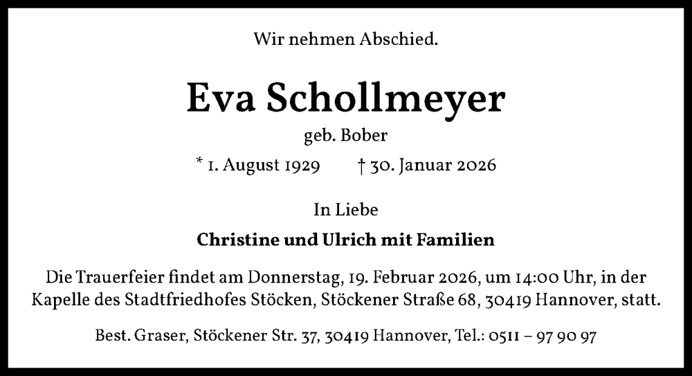 Hier finden Sie alle Traueranzeigen aus der Zeitung, die bisher für Eva Schollmeyer erschienen sind. Weitere Traueranzeigen, die in der Zeitung erscheinen, werden hier ebenfalls aufgelistet