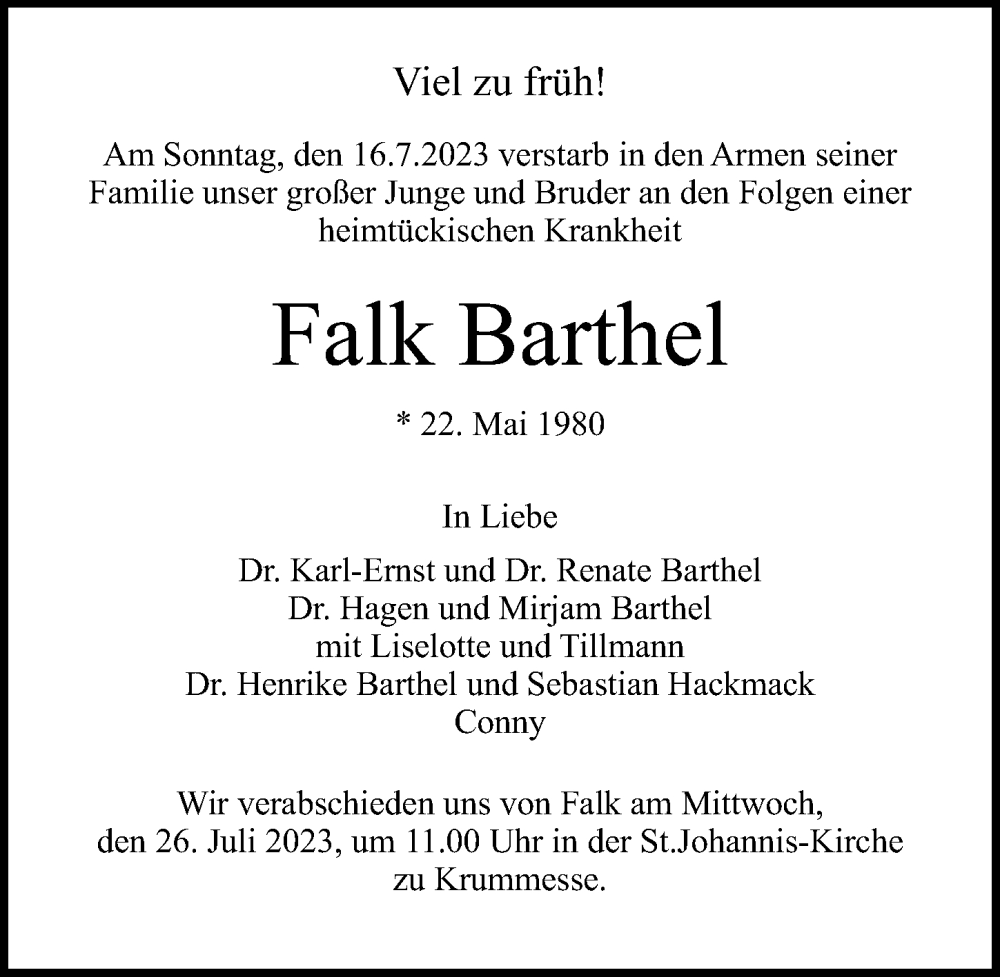 Hier finden Sie alle Traueranzeigen aus der Zeitung, die bisher für Falk Barthel erschienen sind. Weitere Traueranzeigen, die in der Zeitung erscheinen, werden hier ebenfalls aufgelistet