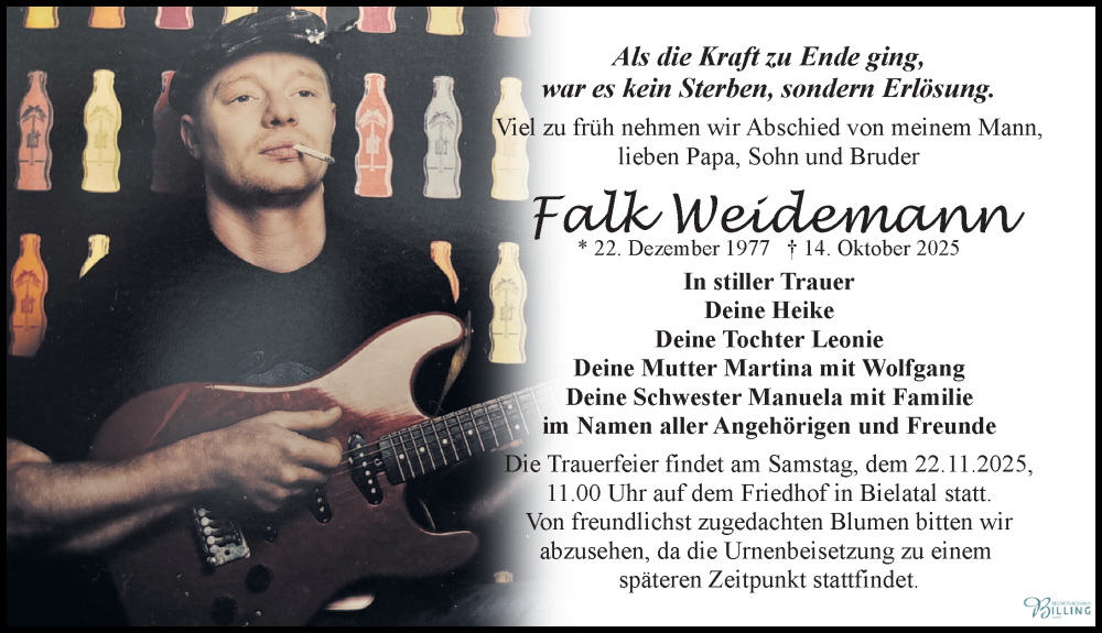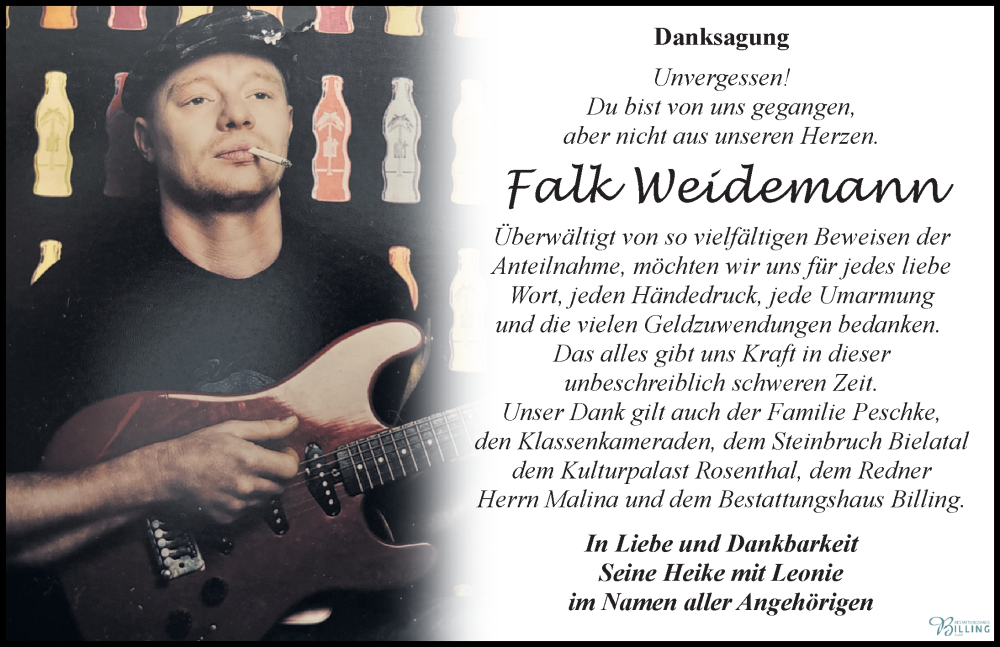 Hier finden Sie alle Traueranzeigen aus der Zeitung, die bisher für Falk Weidemann erschienen sind. Weitere Traueranzeigen, die in der Zeitung erscheinen, werden hier ebenfalls aufgelistet