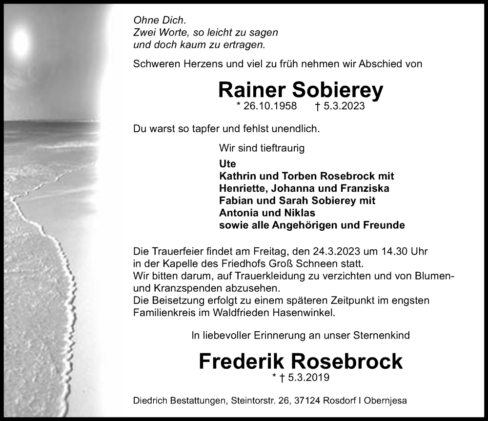 Hier finden Sie alle Traueranzeigen aus der Zeitung, die bisher für Frederik Rosebrock erschienen sind. Weitere Traueranzeigen, die in der Zeitung erscheinen, werden hier ebenfalls aufgelistet
