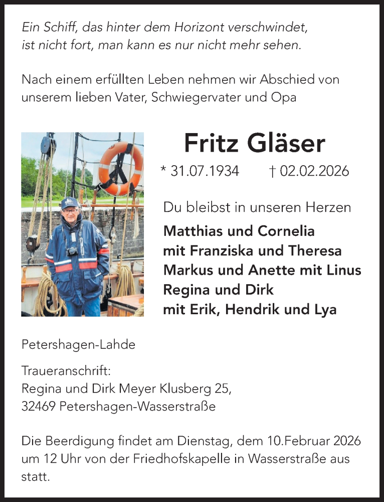 Hier finden Sie alle Traueranzeigen aus der Zeitung, die bisher für Fritz Gläser erschienen sind. Weitere Traueranzeigen, die in der Zeitung erscheinen, werden hier ebenfalls aufgelistet
