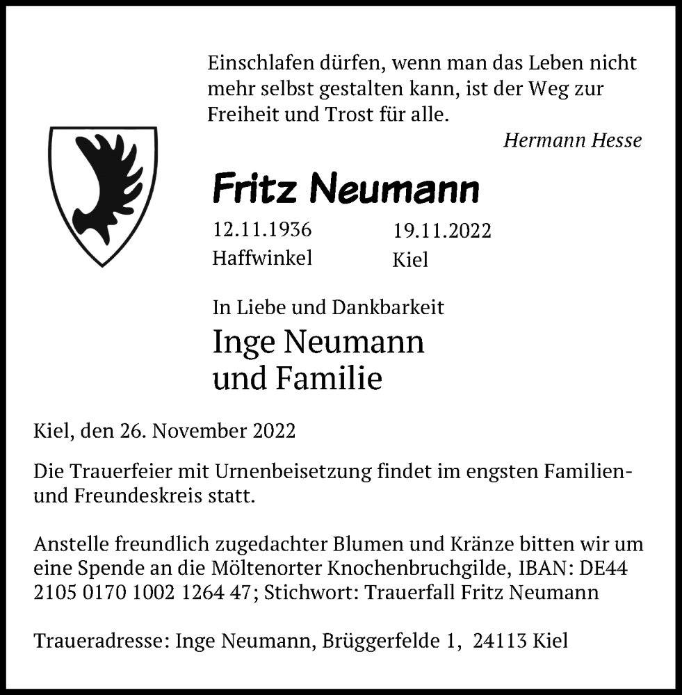 Hier finden Sie alle Traueranzeigen aus der Zeitung, die bisher für Fritz Neumann erschienen sind. Weitere Traueranzeigen, die in der Zeitung erscheinen, werden hier ebenfalls aufgelistet