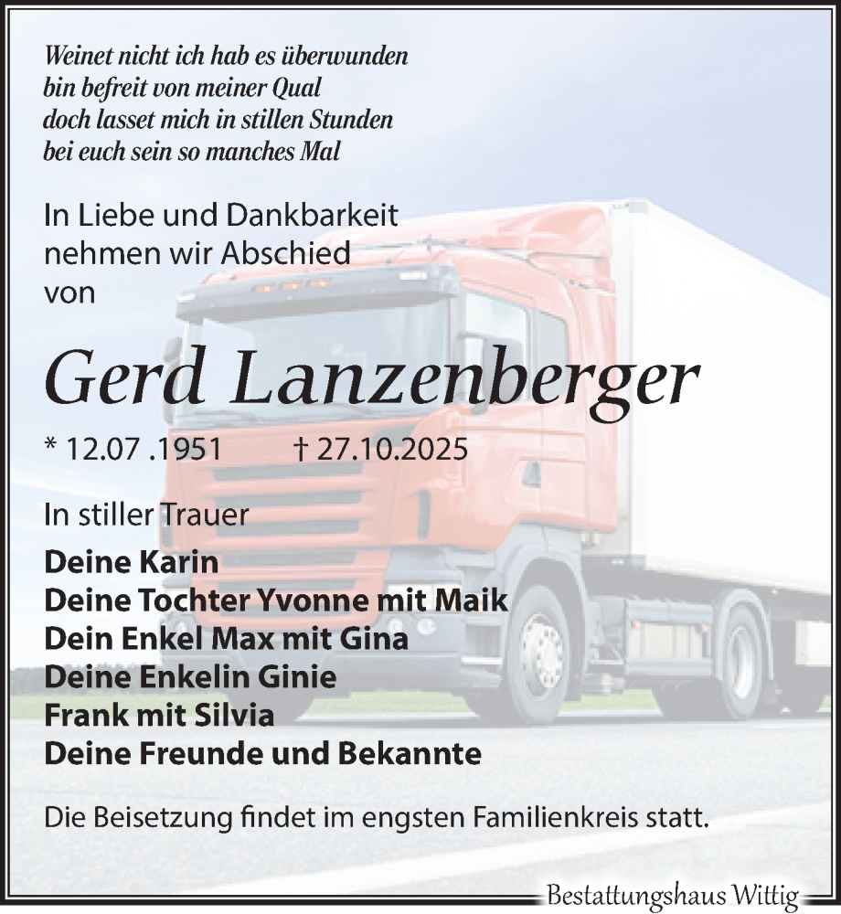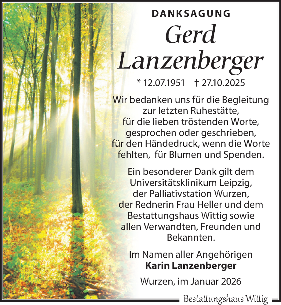 Hier finden Sie alle Traueranzeigen aus der Zeitung, die bisher für Gerd Lanzenberger erschienen sind. Weitere Traueranzeigen, die in der Zeitung erscheinen, werden hier ebenfalls aufgelistet