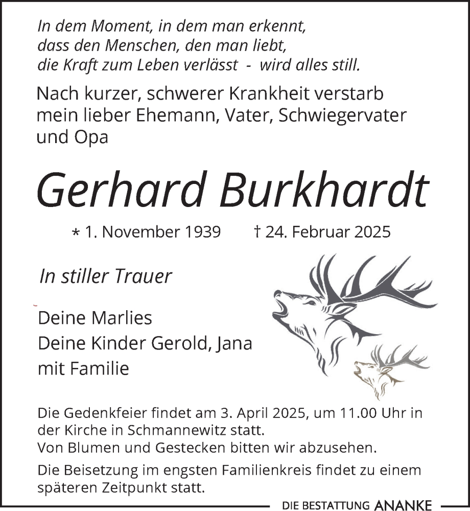 Hier finden Sie alle Traueranzeigen aus der Zeitung, die bisher für Gerhard Burkhardt erschienen sind. Weitere Traueranzeigen, die in der Zeitung erscheinen, werden hier ebenfalls aufgelistet