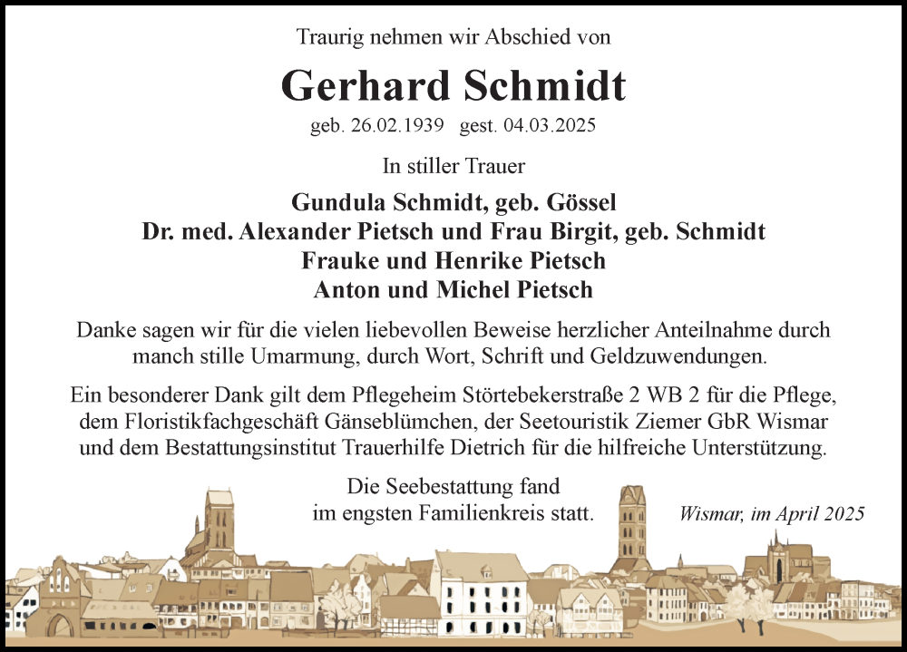 Hier finden Sie alle Traueranzeigen aus der Zeitung, die bisher für Gerhard Schmidt erschienen sind. Weitere Traueranzeigen, die in der Zeitung erscheinen, werden hier ebenfalls aufgelistet