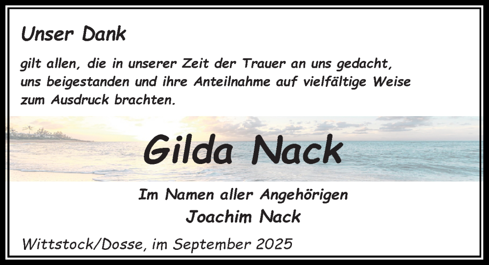 Hier finden Sie alle Traueranzeigen aus der Zeitung, die bisher für Gilda Nack erschienen sind. Weitere Traueranzeigen, die in der Zeitung erscheinen, werden hier ebenfalls aufgelistet