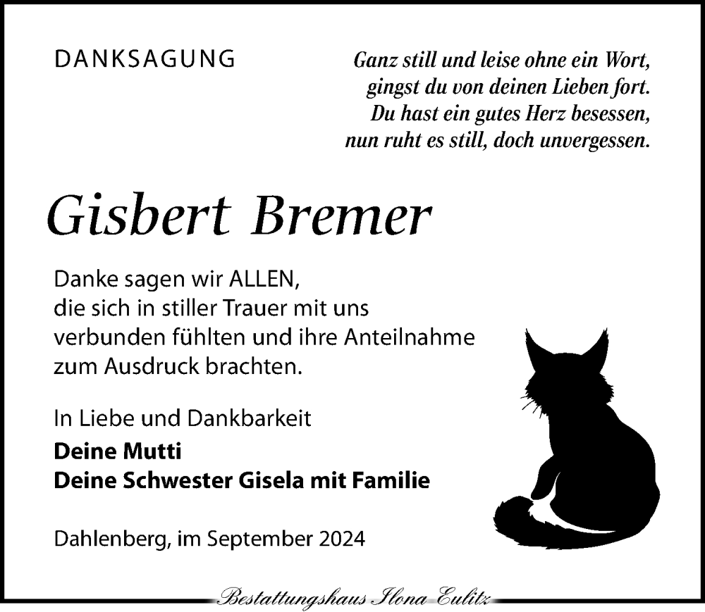 Hier finden Sie alle Traueranzeigen aus der Zeitung, die bisher für Gisbert Bremer erschienen sind. Weitere Traueranzeigen, die in der Zeitung erscheinen, werden hier ebenfalls aufgelistet