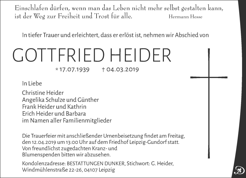 Hier finden Sie alle Traueranzeigen aus der Zeitung, die bisher für Gottfried Heider erschienen sind. Weitere Traueranzeigen, die in der Zeitung erscheinen, werden hier ebenfalls aufgelistet
