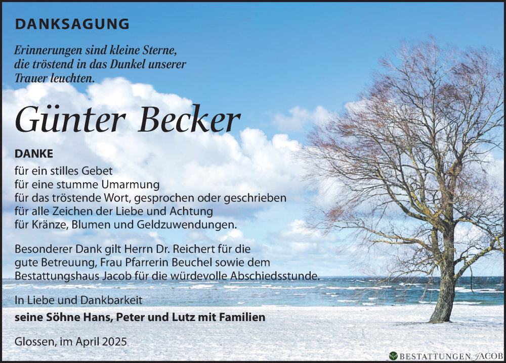 Hier finden Sie alle Traueranzeigen aus der Zeitung, die bisher für Günter Becker erschienen sind. Weitere Traueranzeigen, die in der Zeitung erscheinen, werden hier ebenfalls aufgelistet