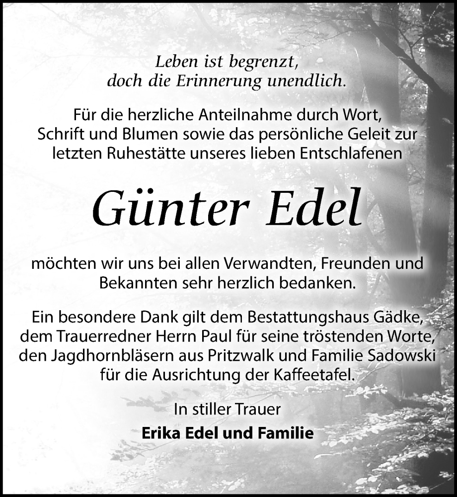 Hier finden Sie alle Traueranzeigen aus der Zeitung, die bisher für Günter Edel erschienen sind. Weitere Traueranzeigen, die in der Zeitung erscheinen, werden hier ebenfalls aufgelistet