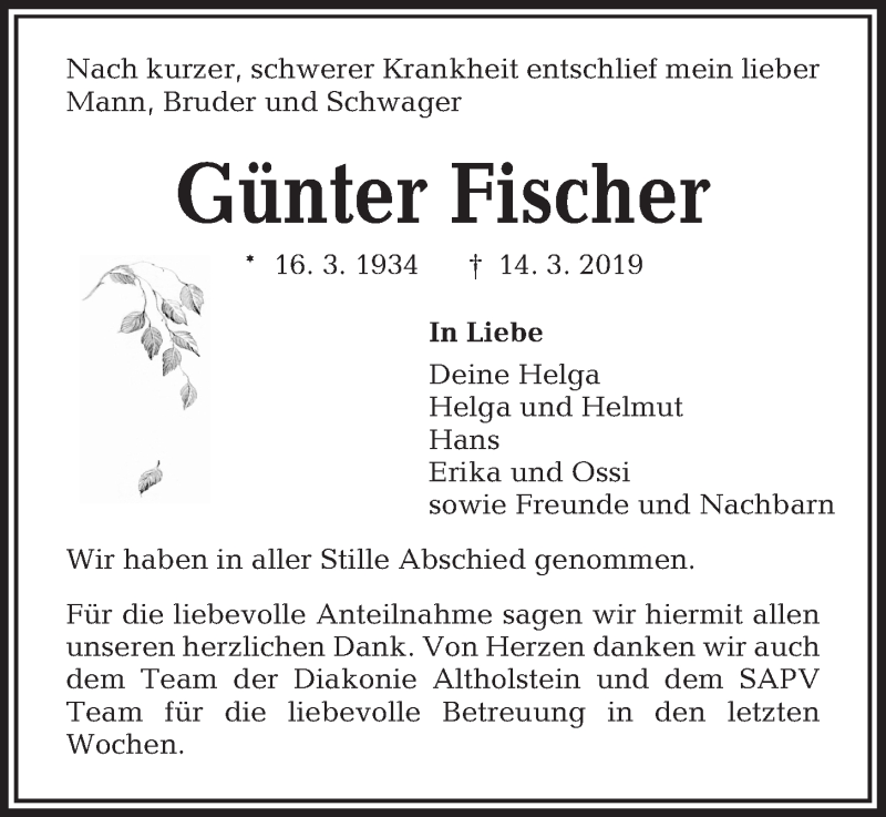 Hier finden Sie alle Traueranzeigen aus der Zeitung, die bisher für Günter Fischer erschienen sind. Weitere Traueranzeigen, die in der Zeitung erscheinen, werden hier ebenfalls aufgelistet