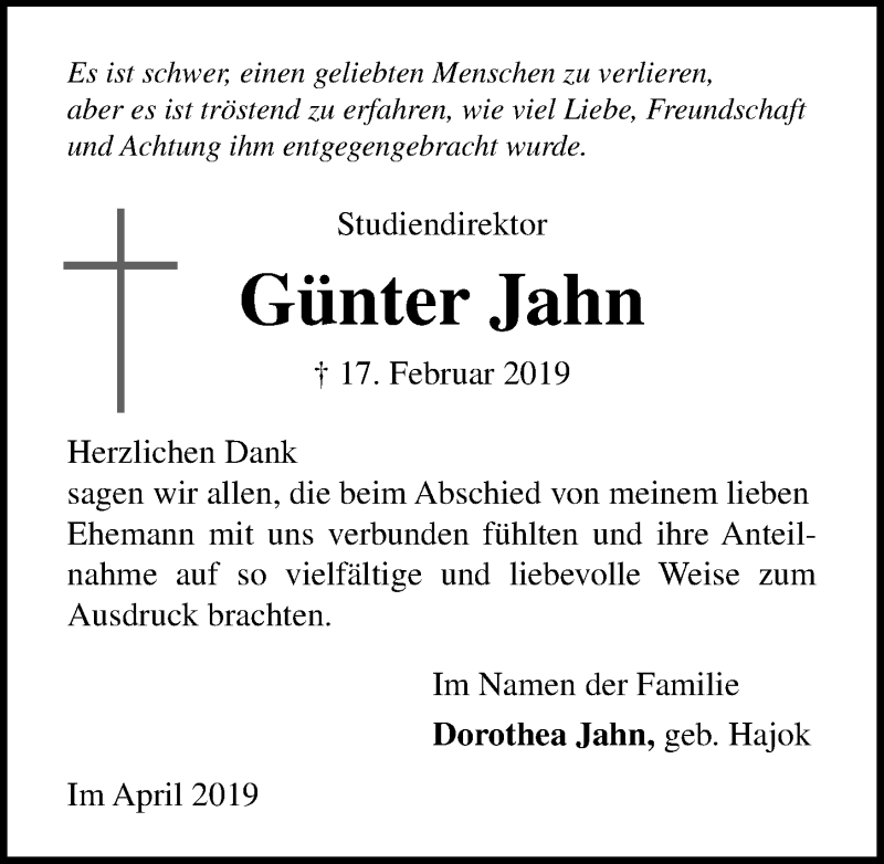 Hier finden Sie alle Traueranzeigen aus der Zeitung, die bisher für Günter Jahn erschienen sind. Weitere Traueranzeigen, die in der Zeitung erscheinen, werden hier ebenfalls aufgelistet