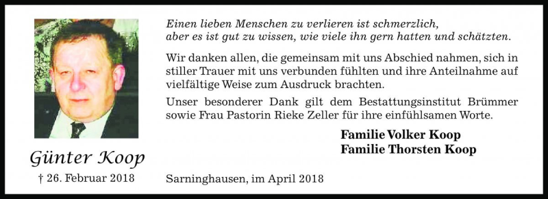 Hier finden Sie alle Traueranzeigen aus der Zeitung, die bisher für Günter Koop erschienen sind. Weitere Traueranzeigen, die in der Zeitung erscheinen, werden hier ebenfalls aufgelistet