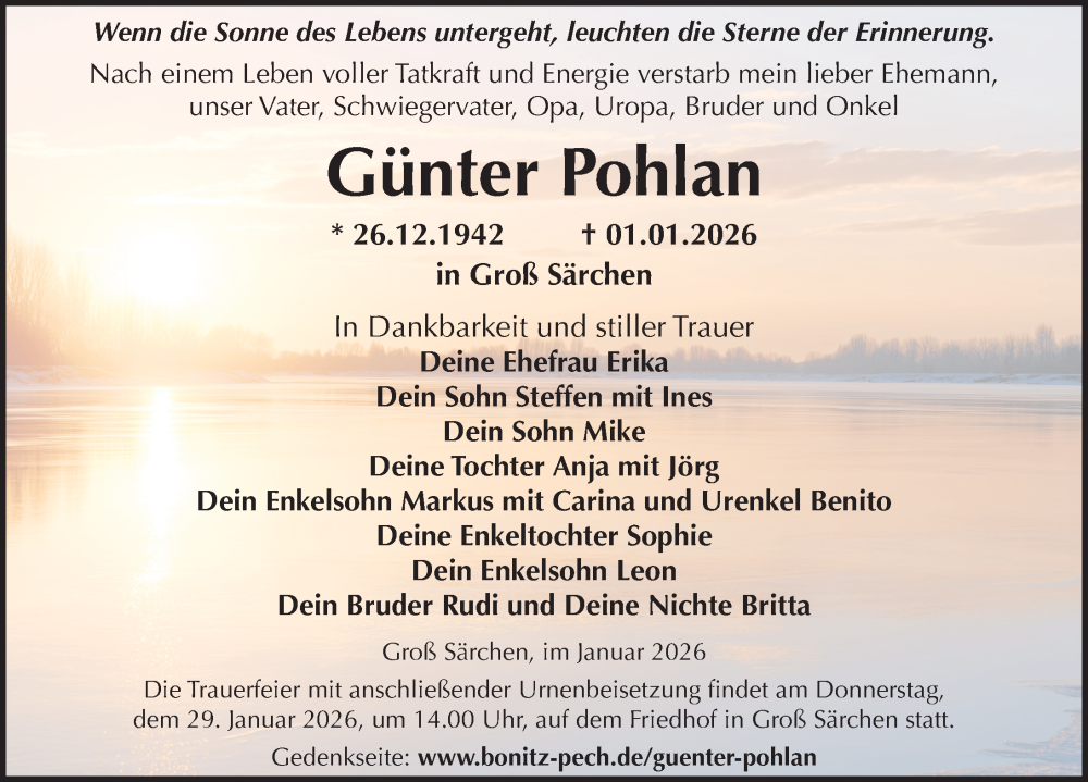 Hier finden Sie alle Traueranzeigen aus der Zeitung, die bisher für Günter Pohlan erschienen sind. Weitere Traueranzeigen, die in der Zeitung erscheinen, werden hier ebenfalls aufgelistet