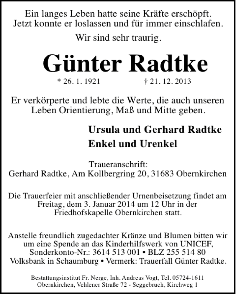 Hier finden Sie alle Traueranzeigen aus der Zeitung, die bisher für Günter Radtke erschienen sind. Weitere Traueranzeigen, die in der Zeitung erscheinen, werden hier ebenfalls aufgelistet