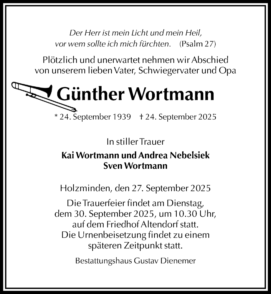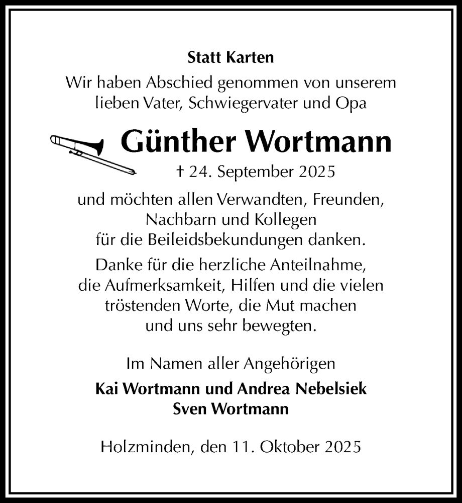 Hier finden Sie alle Traueranzeigen aus der Zeitung, die bisher für Günther Wortmann erschienen sind. Weitere Traueranzeigen, die in der Zeitung erscheinen, werden hier ebenfalls aufgelistet