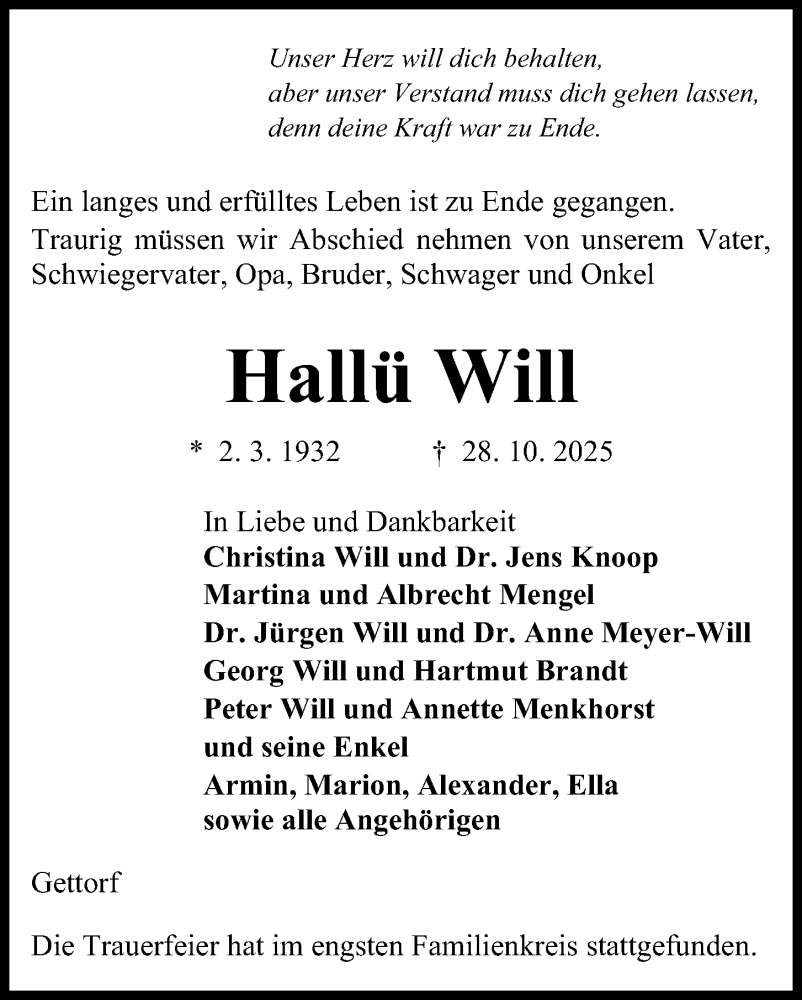 Hier finden Sie alle Traueranzeigen aus der Zeitung, die bisher für Hallü Will erschienen sind. Weitere Traueranzeigen, die in der Zeitung erscheinen, werden hier ebenfalls aufgelistet