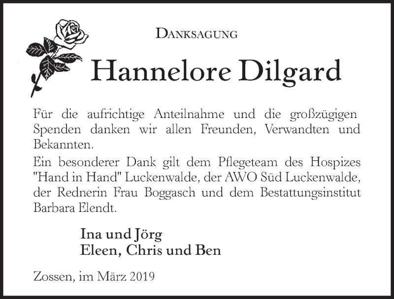 Hier finden Sie alle Traueranzeigen aus der Zeitung, die bisher für Hannelore Dilgard erschienen sind. Weitere Traueranzeigen, die in der Zeitung erscheinen, werden hier ebenfalls aufgelistet