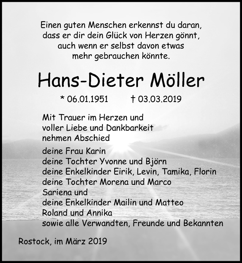 Hier finden Sie alle Traueranzeigen aus der Zeitung, die bisher für Hans-Dieter Möller erschienen sind. Weitere Traueranzeigen, die in der Zeitung erscheinen, werden hier ebenfalls aufgelistet