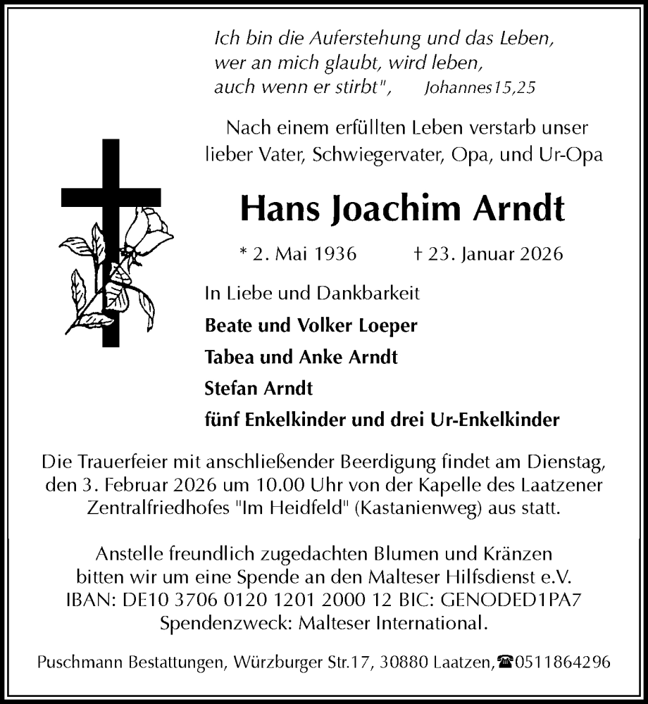Hier finden Sie alle Traueranzeigen aus der Zeitung, die bisher für Hans Joachim Arndt erschienen sind. Weitere Traueranzeigen, die in der Zeitung erscheinen, werden hier ebenfalls aufgelistet