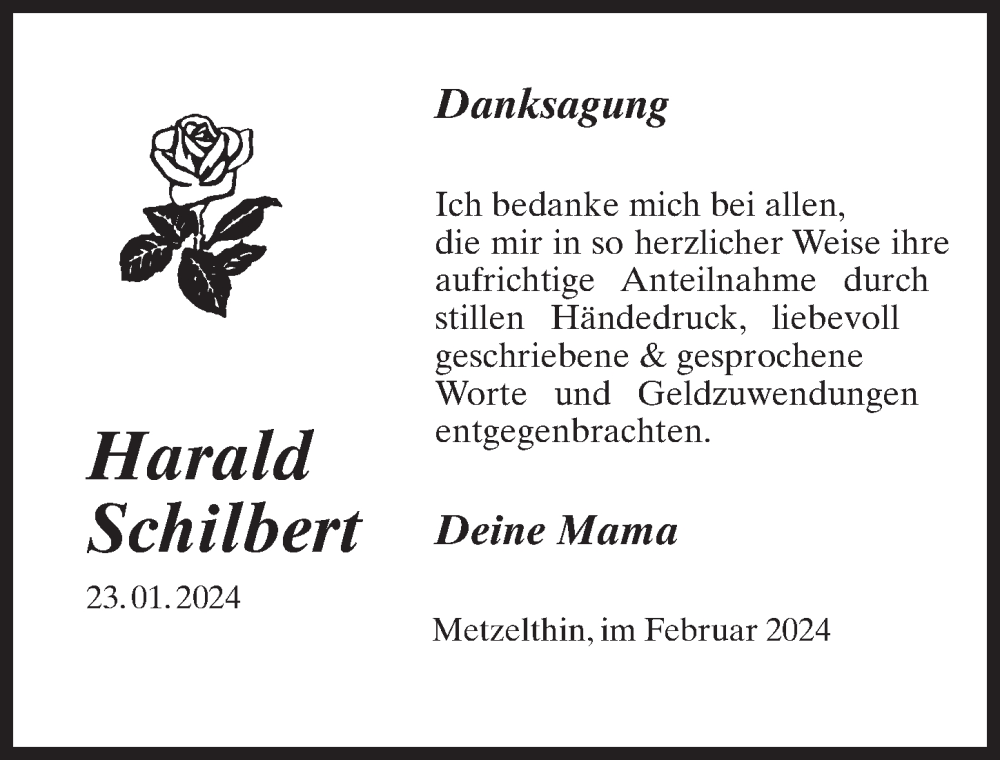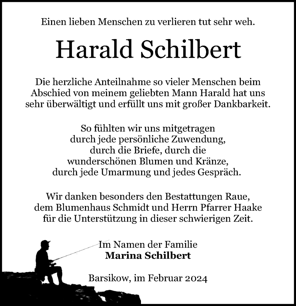Hier finden Sie alle Traueranzeigen aus der Zeitung, die bisher für Harald Schilbert erschienen sind. Weitere Traueranzeigen, die in der Zeitung erscheinen, werden hier ebenfalls aufgelistet