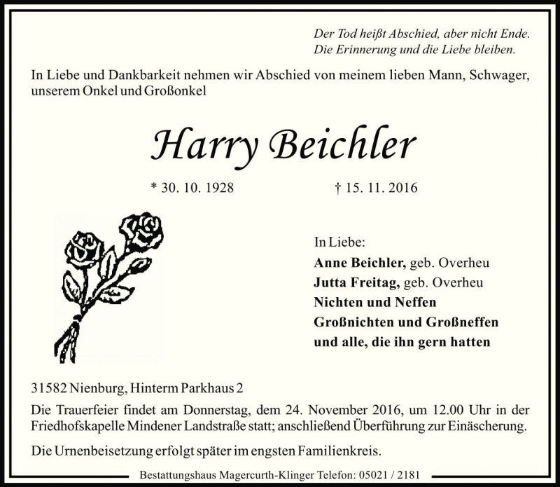 Hier finden Sie alle Traueranzeigen aus der Zeitung, die bisher für Harry Beichler erschienen sind. Weitere Traueranzeigen, die in der Zeitung erscheinen, werden hier ebenfalls aufgelistet