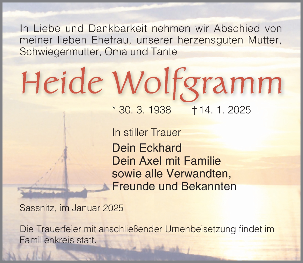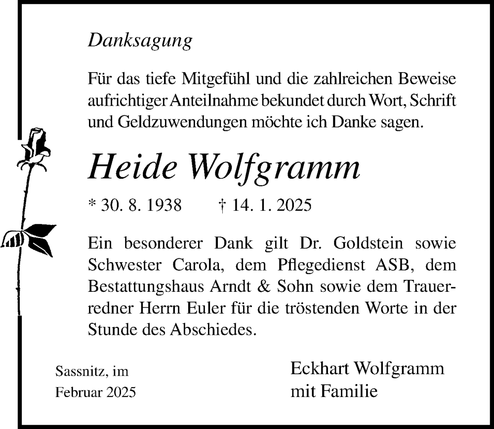 Hier finden Sie alle Traueranzeigen aus der Zeitung, die bisher für Heide Wolfgramm erschienen sind. Weitere Traueranzeigen, die in der Zeitung erscheinen, werden hier ebenfalls aufgelistet