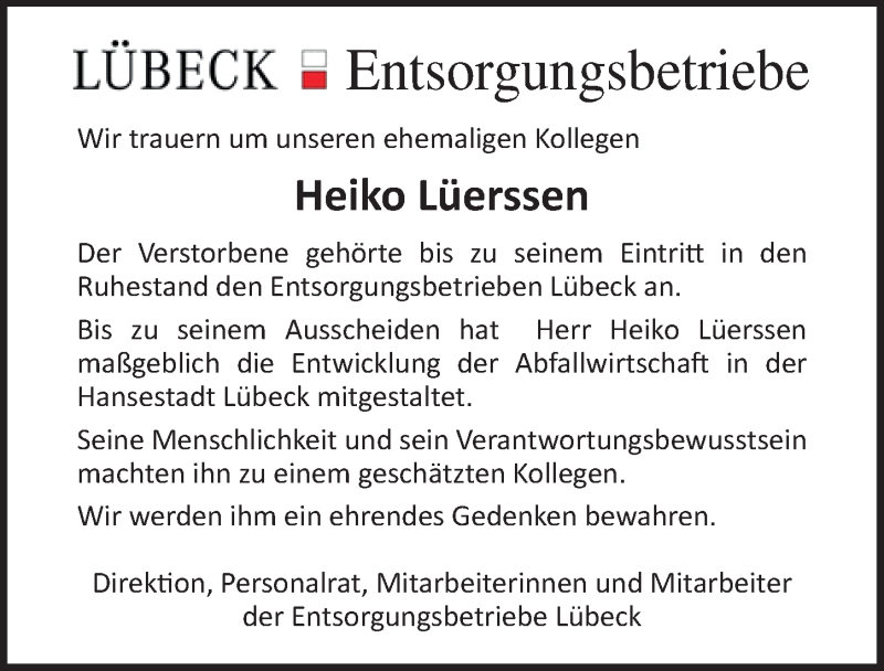 Hier finden Sie alle Traueranzeigen aus der Zeitung, die bisher für Heiko Lüerssen erschienen sind. Weitere Traueranzeigen, die in der Zeitung erscheinen, werden hier ebenfalls aufgelistet