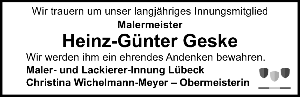 Hier finden Sie alle Traueranzeigen aus der Zeitung, die bisher für Heinz-Günter Geske erschienen sind. Weitere Traueranzeigen, die in der Zeitung erscheinen, werden hier ebenfalls aufgelistet