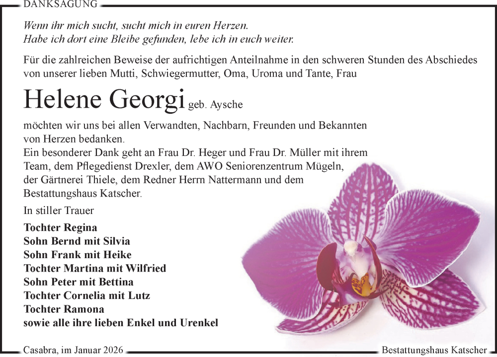 Hier finden Sie alle Traueranzeigen aus der Zeitung, die bisher für Helene Georgi erschienen sind. Weitere Traueranzeigen, die in der Zeitung erscheinen, werden hier ebenfalls aufgelistet